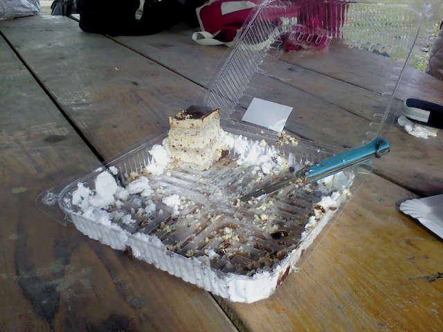 Pauza u centru Malih Pijaca na pijačnom trgu. Dok se grupa odmara ja sam bio vredan. Na brzinu sam pripremio tortu, red je da se jubilej obeleži na neki prigodan način. Dok smo se sladili tortom imao sam priliku da u kratkim crtama predstavim svoju planinarsku biografiju koja je stala u ovih 10.000 km. Celo vreme Pera je neumorno snimao sve što se dogadja, biće njegov film večni svedok ove akcije.